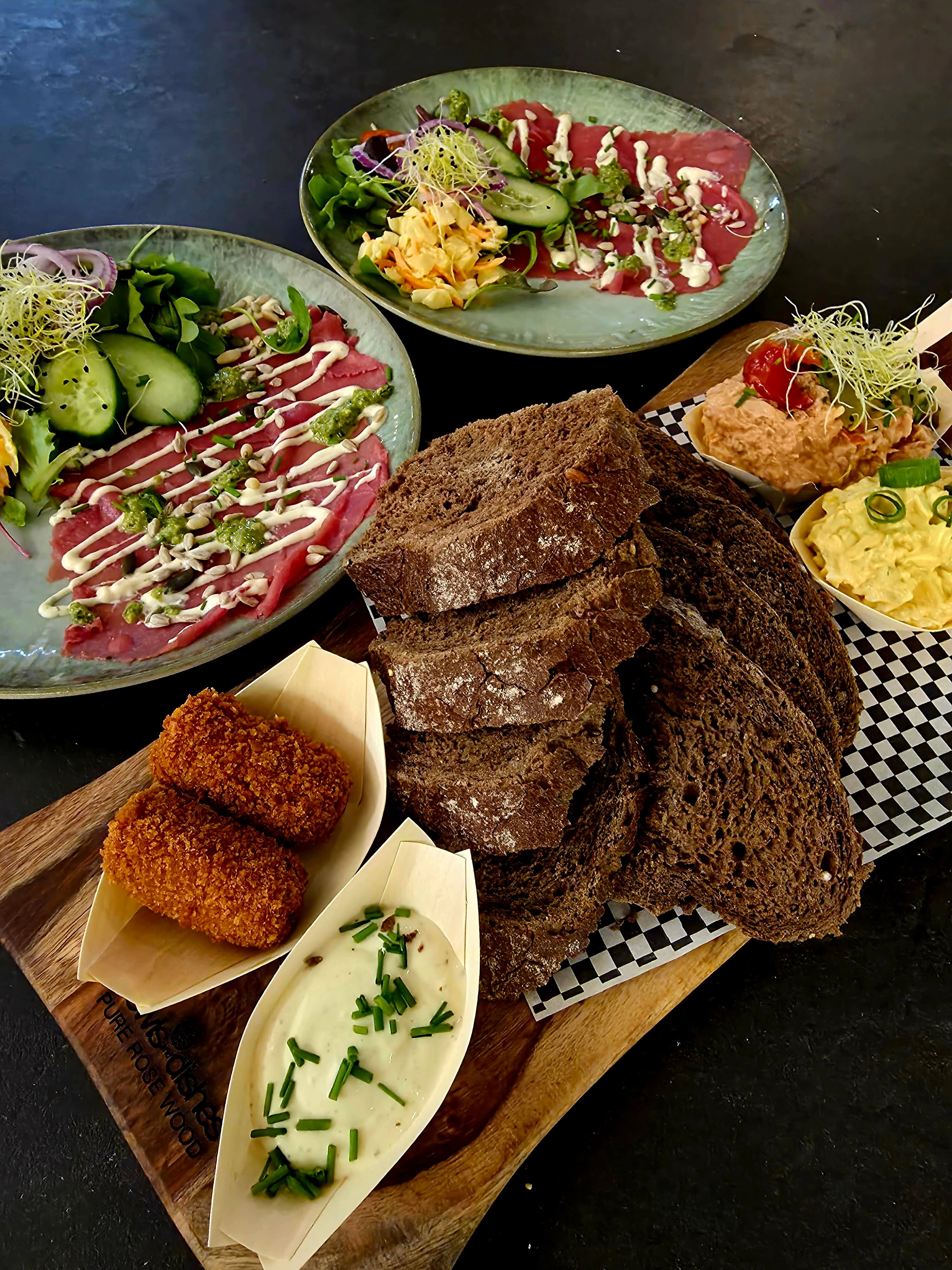 Wij werken met dagverse ingrediënten van onder andere de lokale groenteboer, eierboer en slager. Wij bereiden veel producten zelf zoals onze carpaccio, eiersalade, tonijnsalade en kruidenroomkaas. Ook bakken wij zelf onze roomboter appeltaart, en daarnaast een wisselende selectie van ander huisgemaakt gebak. Een tip is onze marsepeintaart met een Zwitserse roomvulling.